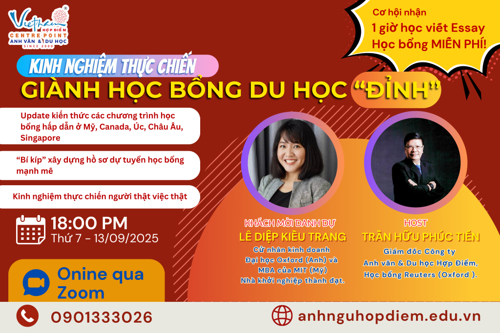 • Bí quyết xây dựng hồ sơ học bổng ấn tượng, chinh phục các trường TOP thế giới.