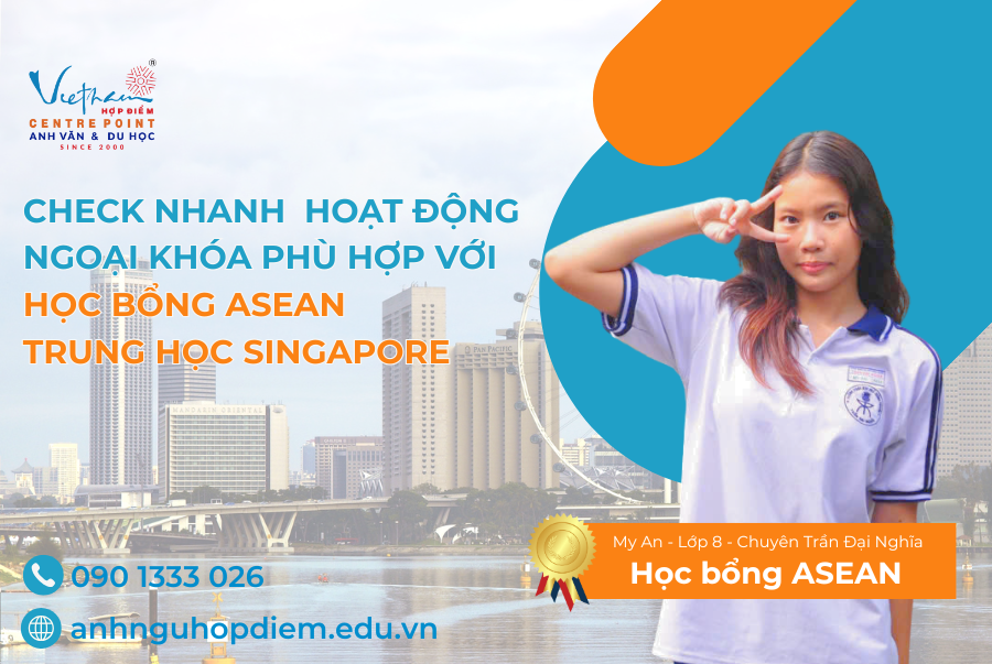 Học bổng ASEAN – Trung học Singapore luôn được xem là một trong những chương trình học bổng danh giá nhất dành cho học sinh Việt Nam lớp 8 – 9 – 10. Không chỉ yêu cầu học lực tốt và khả năng tiếng Anh ổn định, hoạt động ngoại khóa chính là yếu tố quan trọng giúp bạn thể hiện một hồ sơ toàn diện, năng động và phù hợp với triết lý giáo dục Singapore.