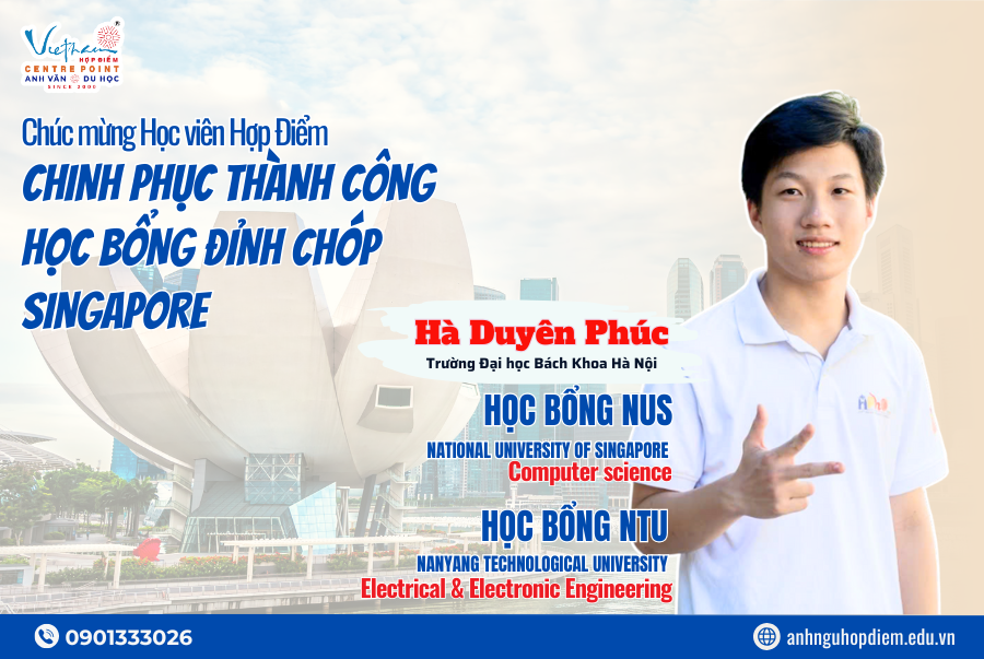 Hợp Điểm chúc mừng học viên Hà Duyên Phúc đã xuất sắc giành học bổng toàn phần từ 2 đại học danh tiếng của Singapore!
