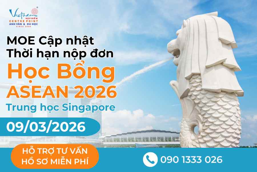 Bộ Giáo dục Singapore (MOE) vừa cập nhật thời hạn nộp đơn Học bổng ASEAN 2026 bậc trung học, mở ra thêm cơ hội cho học sinh lớp 8–9–10 tại Việt Nam hoàn thiện hồ sơ và tham gia chương trình học bổng danh giá này.