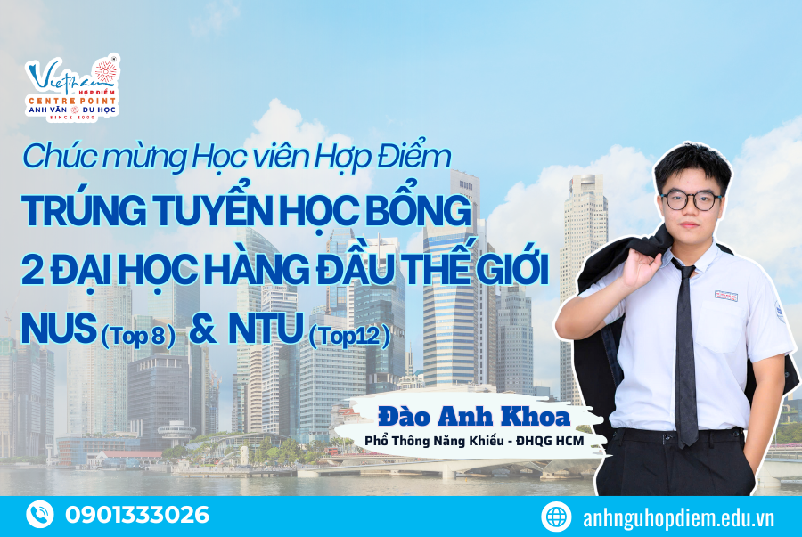 Chúc mừng học viên Đào Anh Khoa! Đã cùng Hợp Điểm khép lại hành trình chinh phục ước mơ với 2 học bổng danh giá!