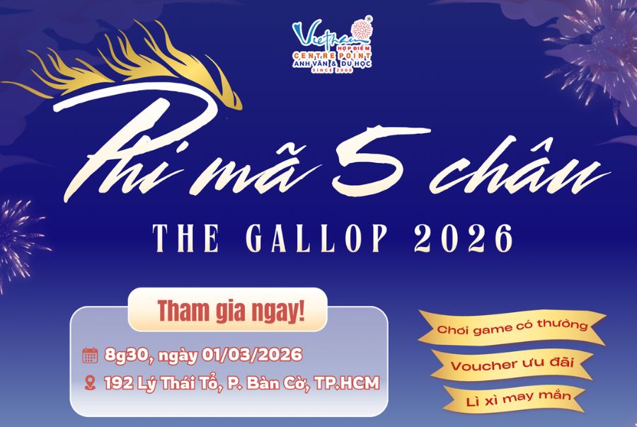 Thấu hiểu những băn khoăn đó, Hợp Điểm tổ chức sự kiện đặc biệt “Phi Mã 5 Châu – The Gallop 2026” – ngày hội tư vấn học bổng và định hướng du học toàn diện, giúp học sinh “tăng tốc” hành trình vươn ra thế giới một cách bài bản và hiệu quả.
